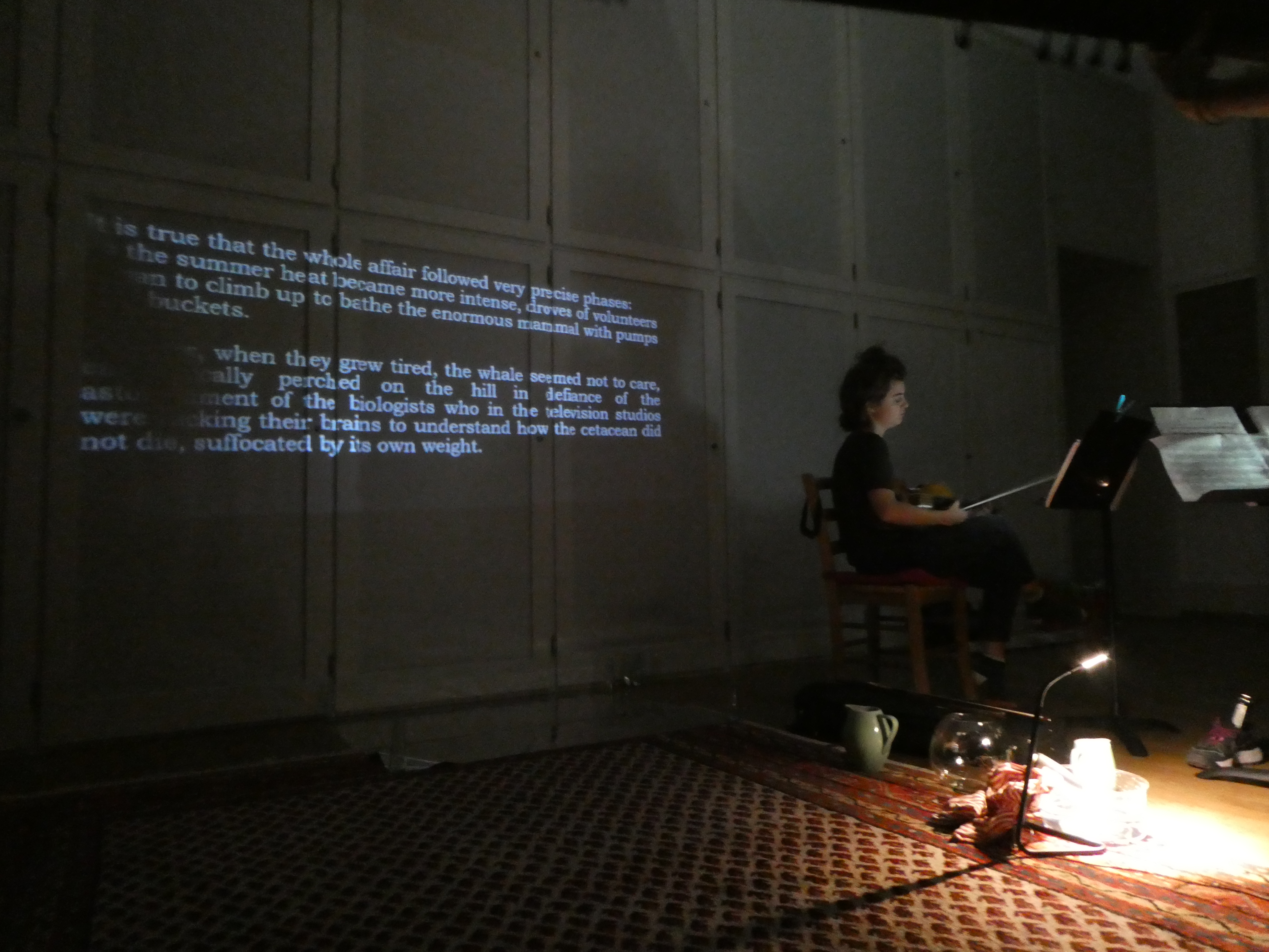 “La Balena” or The Whale is a multidisciplinary, multi-layered show: based on a tale written by Giulio Tanasini, it sets out to stage a story through the use of music, acting, stage installation and audiovisual elements. Inspired by the profile of the Montserrat Mountain, the plot of this legend is simple: one day the population of a valley wakes up and discovers a whale lying on top of a mountain. This apparition generates several reactions that chain up to a poetic epilogue that smells of magical realism. The aim of our project is to recreate and transmit the dreamlike atmosphere of the tale in a sometimes direct, sometimes allusive way, rediscovering as a musical ensemble the almost “mystical” function of the Troubadours.